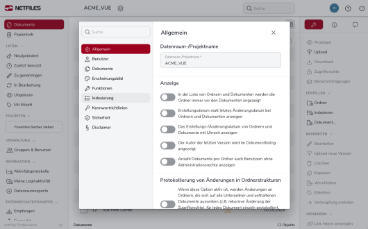 Hier können Sie den Datenraumname bzw. Namen des Projekts ändern / umbenennen.
