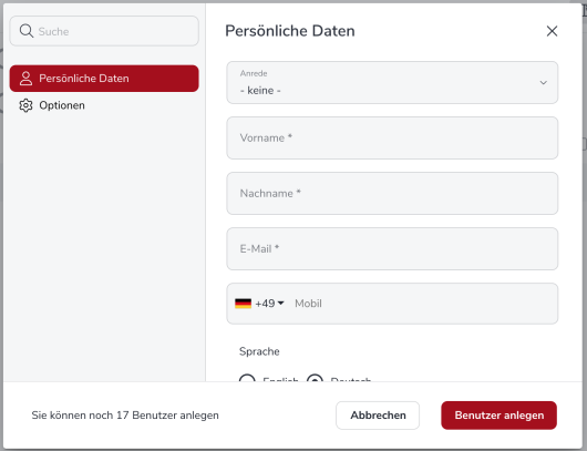 Bitte beachten Sie, dass nur Administratoren und Gruppenadministratoren Benutzer anlegen und verwalten können!