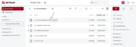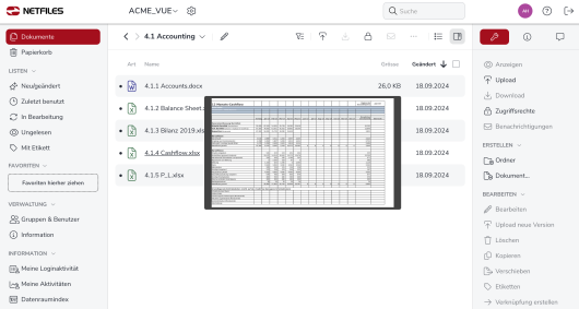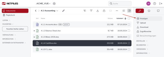 Die meisten Dokumente können Sie direkt in netfiles betrachten, ohne dass Sie die Datei erst herunterladen müssen.