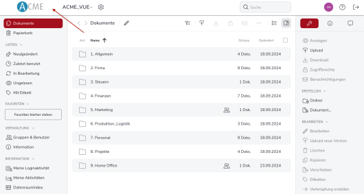 Diese Logo wird nun auch in der Datenraum Ansicht angezeigt.
