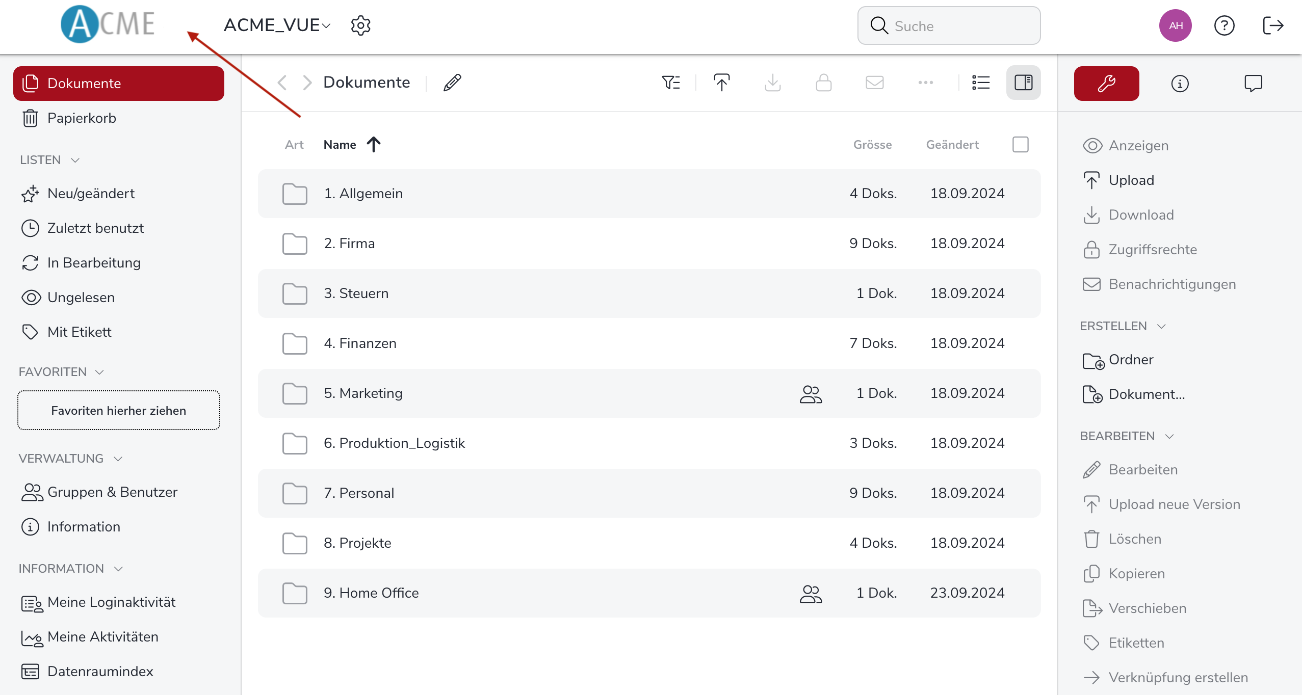 - Wie kann ich den Datenraumname / Projektname ändern? (Admin)